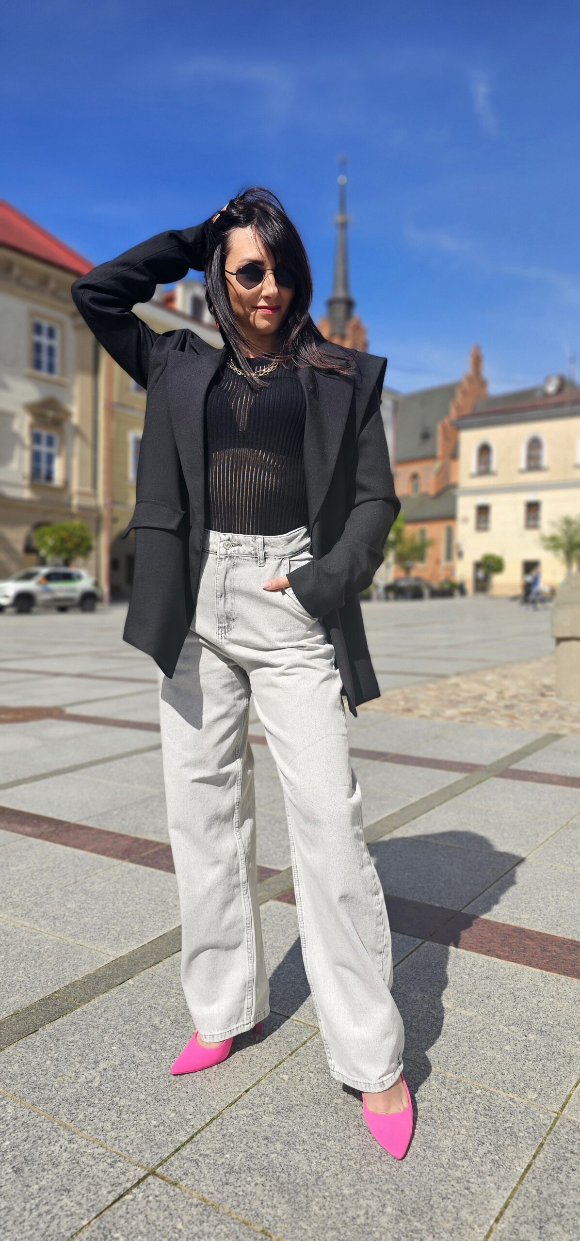 Modelka ma 164cm wzrostu i rozmiar S na zdjęciach.