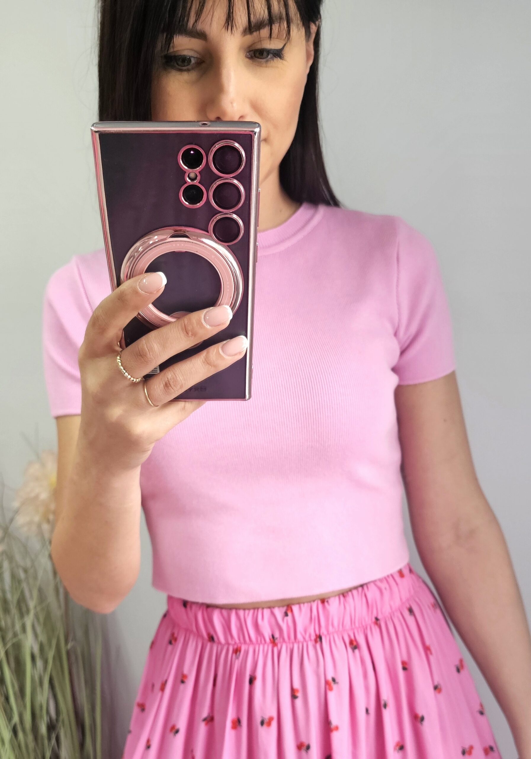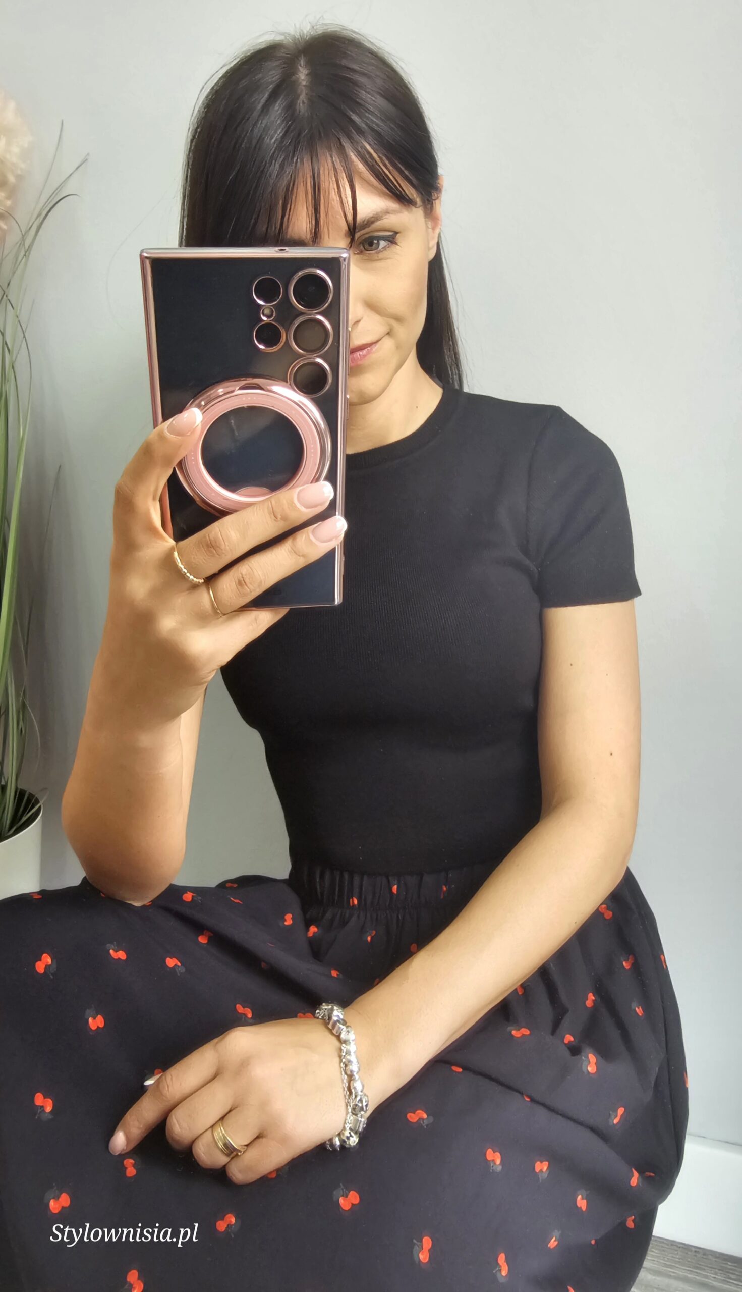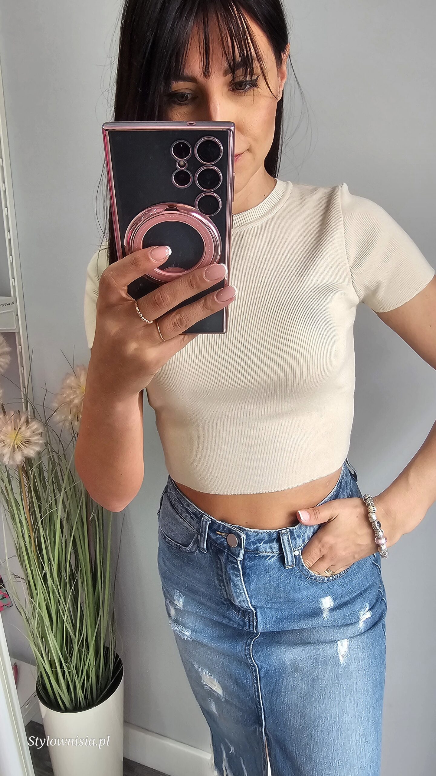 Modelka ma na sobie rozmiar S i ma 164 cm wzrostu, biust 75B.
